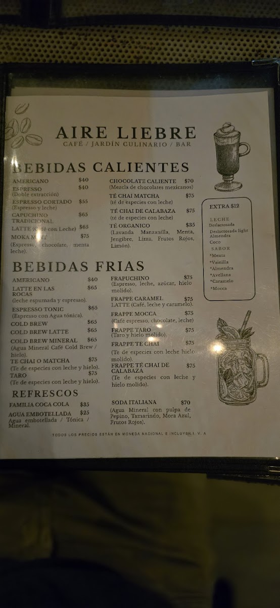 Aire Liebre Reliz Café - Jardín Culinario - Bar Menu